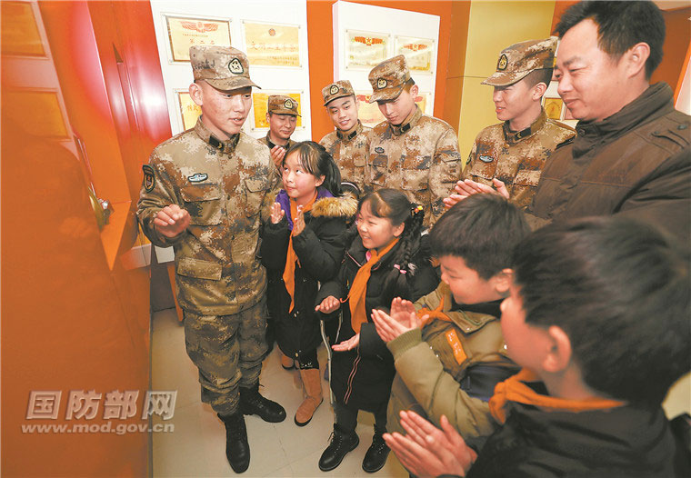 2019年2月22日,基地官兵把受助学生请到营区,让他们体验军营生活,参观单位史馆。张先达摄