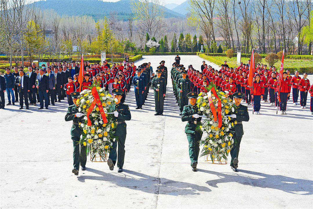山东省青州市军地齐聚青州市烈士陵园举行清明祭扫活动