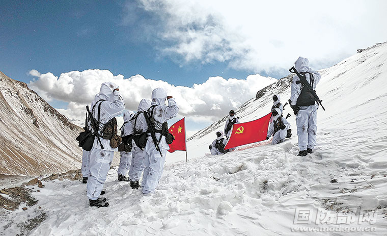 西藏阿里军分区某边防连官兵在海拔5000多米的山口巡逻