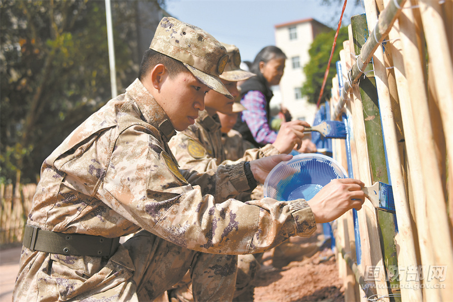 驻军某部官兵发扬拥政爱民传统,以实际行动投身兴边富民实践。
