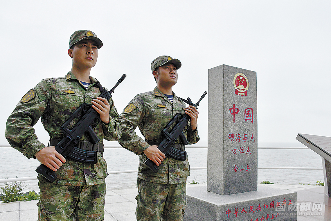 东部战区海军某观通站二级上士蔡新波(左)和中士赵以晗在站岗。