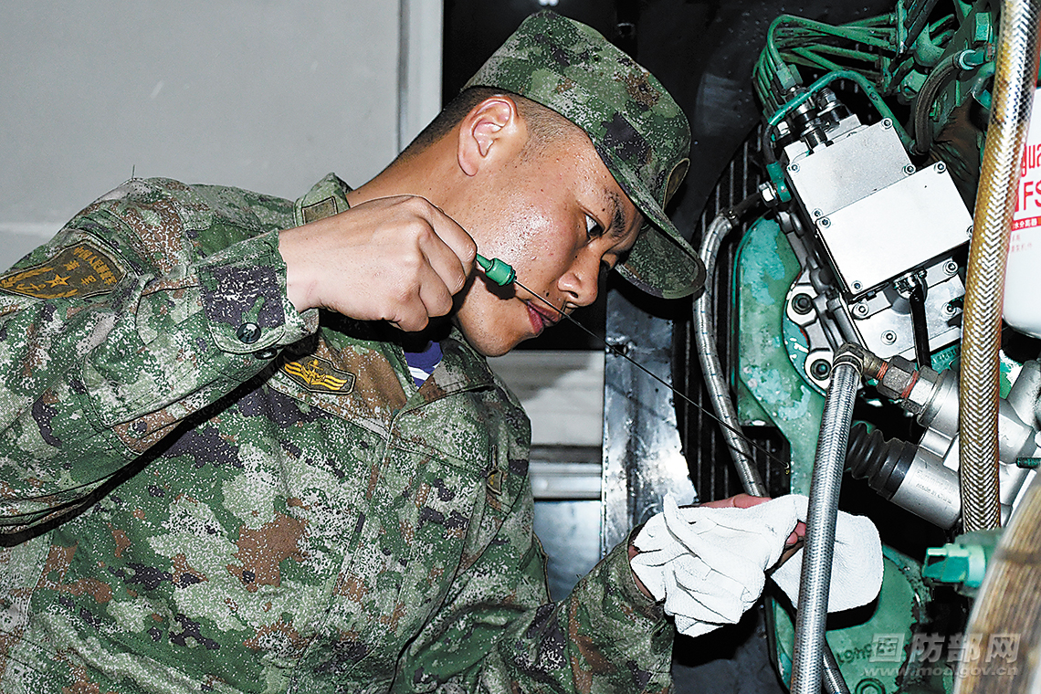 二级上士赵龙涛一身腱子肉,干活时总是冲在前;一级上士杨万宁学习专业废寝忘食,经常是眼睛酸涩也不肯离开战位;二级上士李欣阳维修装备有一手,不修好装备不睡觉……