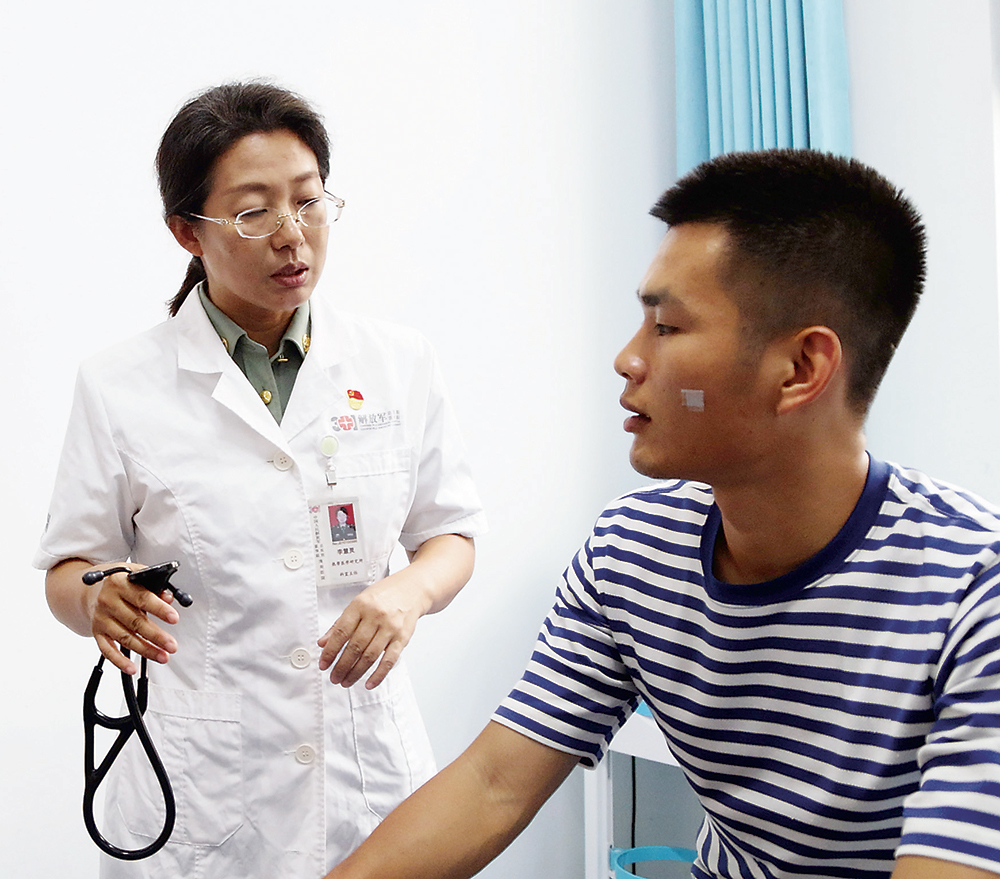 李慧灵(左)为战士诊断病情。匡 野摄