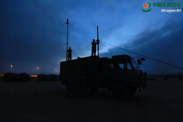 夜间架设通信设备。