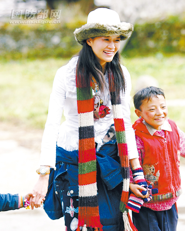 到西藏支教期间,韦慧晓和孩子们在一起。