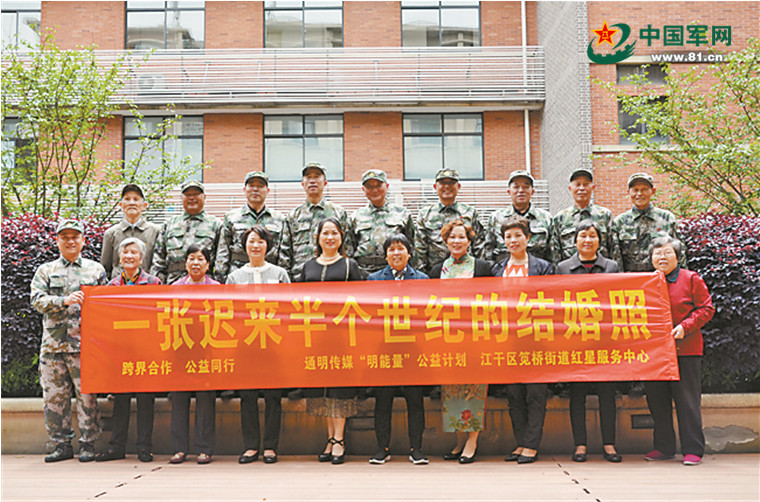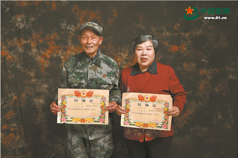 来自杭州市江干区的老兵沈良源就是其中一位。沈良源今年80岁,1958年入伍,1964年退伍,曾在空军某部服役。他1968年9月27日与妻子登记结婚,因为部队战备任务重,两人没来得及拍结婚照,这一等就是半个世纪。身着迷彩服,手持结婚证,沈良源望着镜中“精致”的自己,笑得有些腼腆。“今年是我们结婚51周年,迟到了半个世纪,虽然晚了点,可是更有意义。”