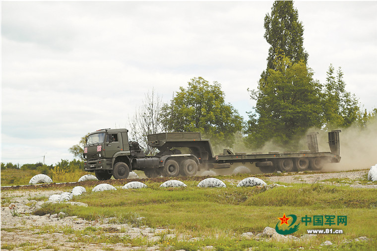 比赛当天11时30分,单车赛重装运输车1C项目开始,我驾驶着标有中国国旗的战车最后一个上场。