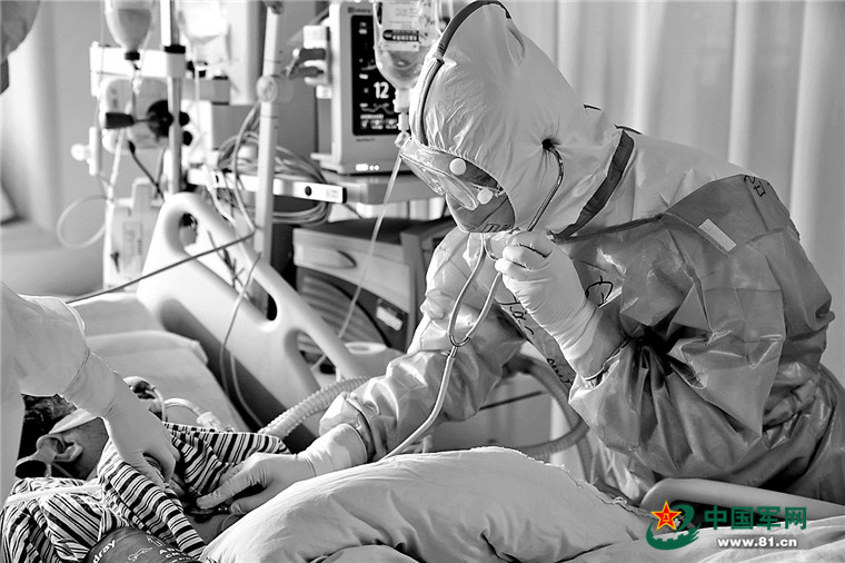 图为1月27日,宋立强在武昌医院为重症患者诊治。中国军网记者 高辉 摄