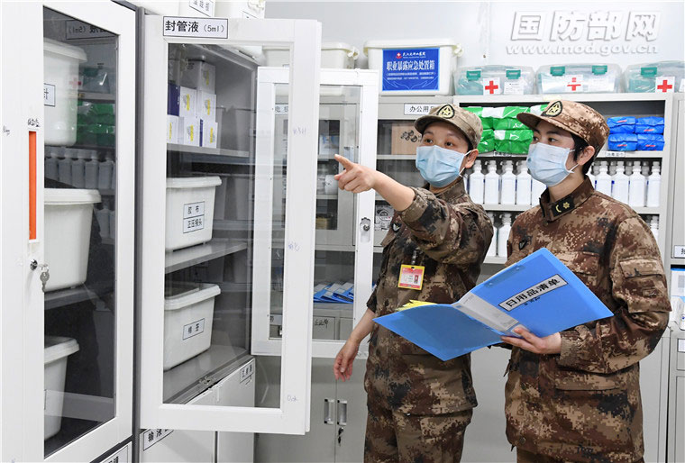 宋彩萍(左一)和同事一起核查库房医疗物品清单。