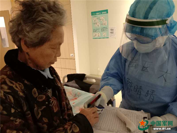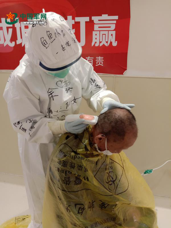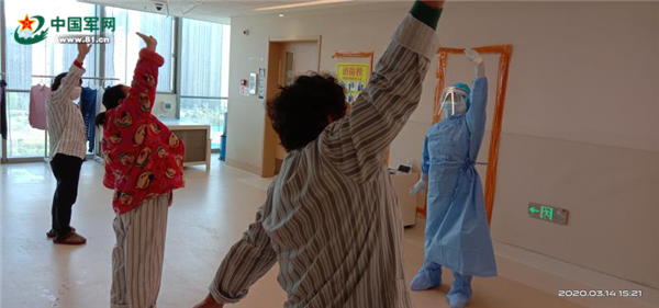 病房里,男护士刘永军和同事正在查房。“嬢嬢,恢复蛮扎实哟,等东湖的樱花都已经开喽,你好了我们约起过早!”家住湖北仙桃的刘永军,是地地道道的湖北伢子,瞒着家人出征一线,至今父母奶奶都还不知道他在武汉。发现队员们很多武汉话听不懂,刘永军就主动当起了大家的“翻译员”,架设起队员和患者沟通的桥梁。同时,他还将常用的武汉话整理了教给队友,现在大家张口就能说上几句,顺畅的沟通拉近了医患之间心与心的距离。