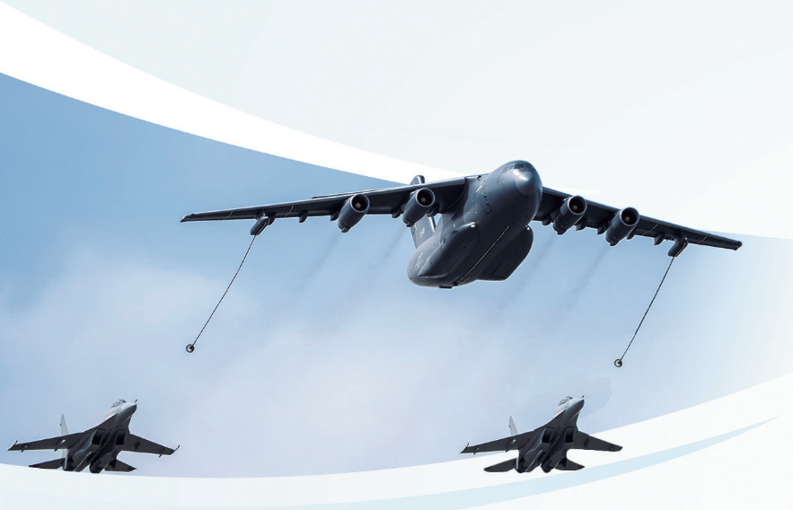运油-20A单机和歼-16双机加油编队进行飞行展示。黄雨桥摄