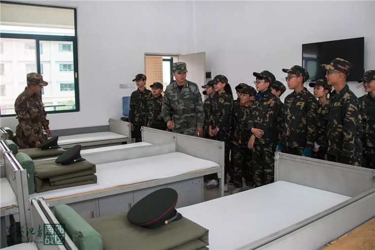 一进班排宿舍,学生们的目光就被方方正正的“豆腐块”和整齐划一的物品摆放吸引住了。“怎么才能把被子叠得如此方正?”“床单上怎么做到一点褶皱都没有?”大家你一言我一语,敬佩地围着战士们请教诀窍。