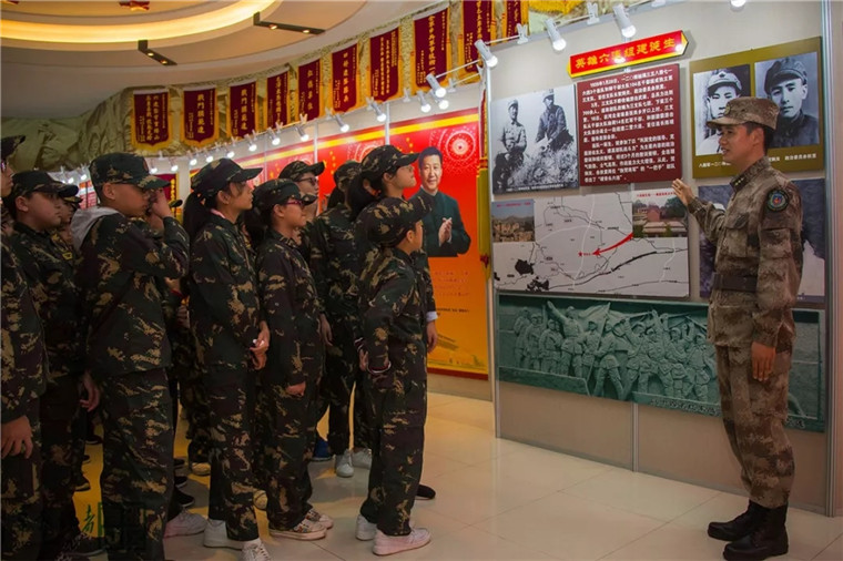 参观完宿舍,他们来到了六连荣誉室。讲解员如数家珍般向学生们介绍了六连光辉战史,并一一讲述每样历史遗物和荣誉的来历,让学生们充分了解连队光荣传统和光辉历程,真切体会六连官兵英勇顽强、不怕牺牲的意志品质。随后,学生们一行来到室外体验轻武器装备。抓一抓握把,抠一抠扳机,瞄一瞄靶星……他们对着桌上一线排开的各式枪械爱不释手。官兵们耐心地为学生讲解示范武器的操作要领,几名学生很快就掌握了某型步枪的操作使用方法。