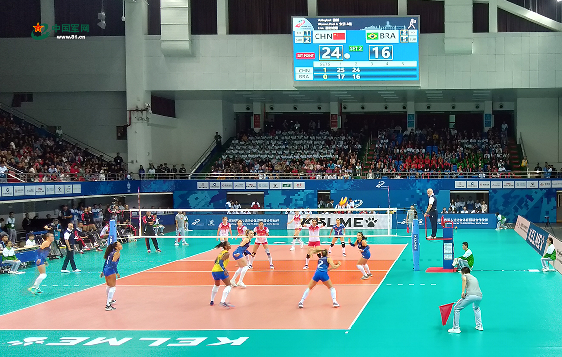 中国军网武汉10月17日电(记者乔楠楠)10月17日,中国八一女排迎来第七届世界军人运动会女排小组赛第二场比赛,对手是卫冕冠军巴西女排。在刚刚结束的比赛中,中国八一女排以25: 17、25: 16、25: 21,总比分3: 0战胜巴西女排,为中国八一女排拿下本届军运会第二场胜利。