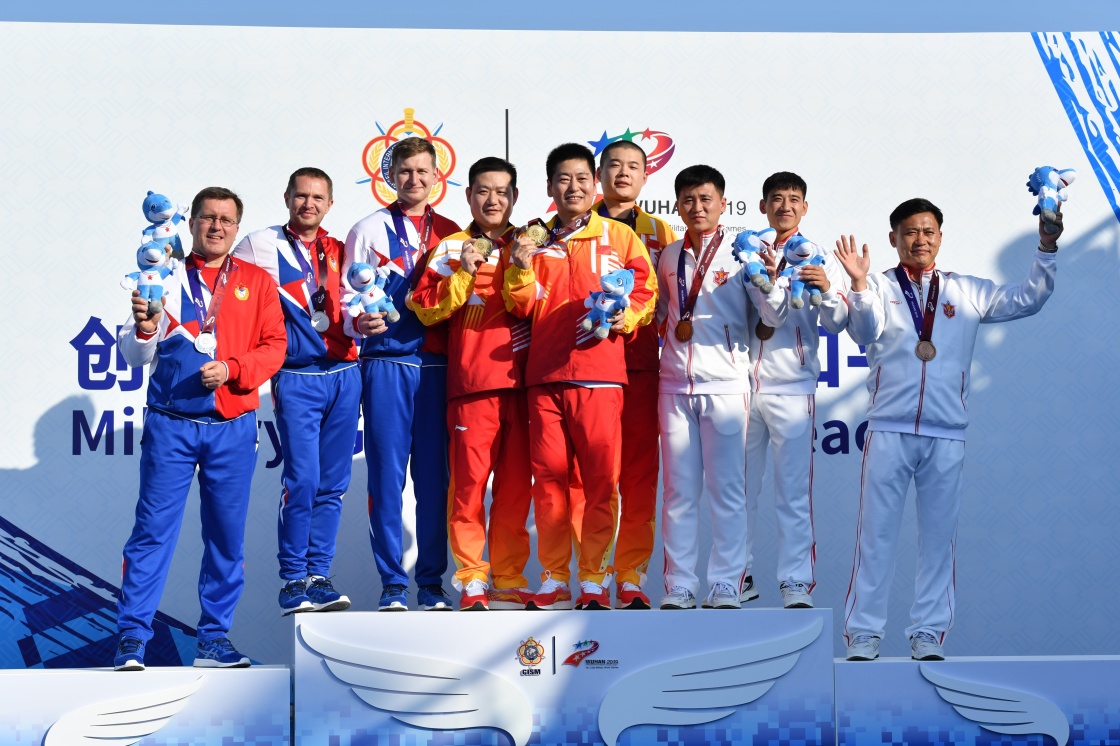 新华社武汉10月19日电(记者刘济美、喻珮)19日,第七届世界军人运动会迎来开幕后首个比赛日。在男子25米手枪军事速射团体决赛中,八一射击队副队长兼教练金泳德领衔的中国队获得团体冠军。这也是第七届世界军人运动会产生的首枚金牌。