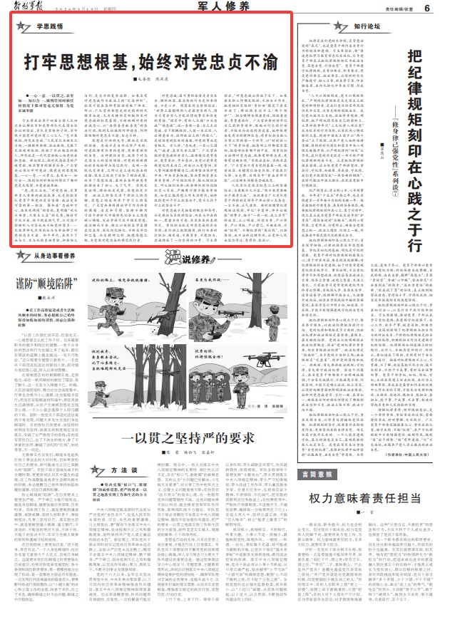 思想是行动的先导,理论是实践的指南。忠诚不是自然而然产生的,对党既要有朴素的感情,更要有理性的自觉。这种理性自觉,就源于对马克思主义的深刻领悟,对党的创新理论的系统钻研与笃信践行。反观一些蜕化变质者,之所以走上违纪违法的道路,根本上就在于放松了理论武装、放弃了思想改造,最终在各种诱惑考验面前丢了初心、失了气节。实践反复证明,理论就是武器,思想就是力量。政治上的坚定源于理论上的清醒,思想上的成熟源于学习上的笃定。广大官兵要将理论学习作为终身的课题、追求和习惯,坚持不懈用习近平新时代中国特色社会主义思想凝心铸魂,突出学好习近平强军思想,通过锲而不舍、持之以恒的真学真懂真信真用、深化内化转化,不断筑牢信仰之基、补足精神之钙、把稳思想之舵,自觉做对党忠诚的模范践行者。