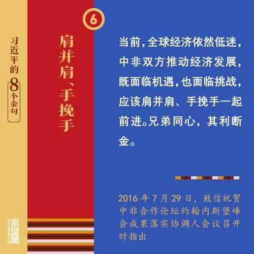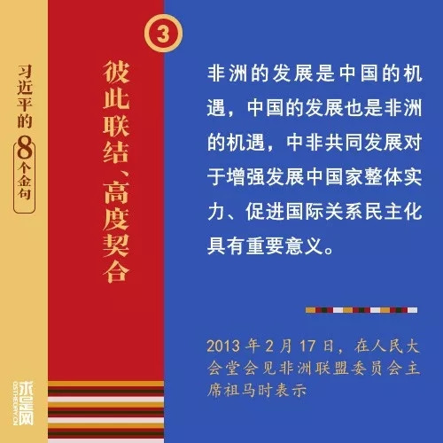 7月19日至28日,中国国家主席习近平将对阿联酋、塞内加尔、卢旺达和南非进行国事访问,出席金砖国家领导人第十次会晤,过境毛里求斯并进行友好访问。到访的5个国家中,有4个是非洲国家。而关于中非友谊、中非发展、中非命运共同体理念,习近平曾在不同场合多次强调和阐释,一起来学习吧!