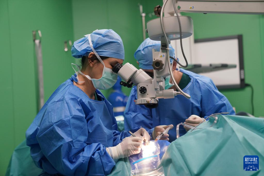 12月14日,中国海军“丝路方舟”号医院船在牙买加法尔茅斯提供医疗服务期间,眼科医生为患者实施白内障手术。新华社发(何雨谦摄)