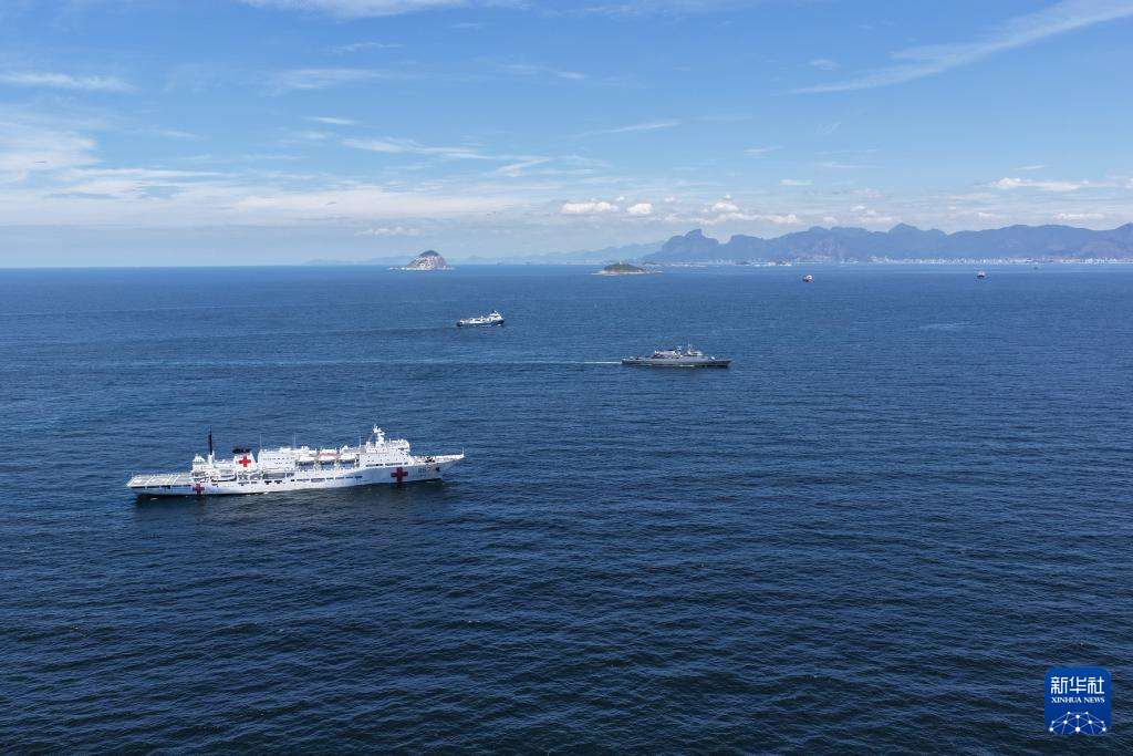 离港后,医院船与巴西海军舰艇在邻近海域开展海上联合演练,双方舰艇密切协同,组织联合搜救、编队运动、编队分航等预定课目演练。
