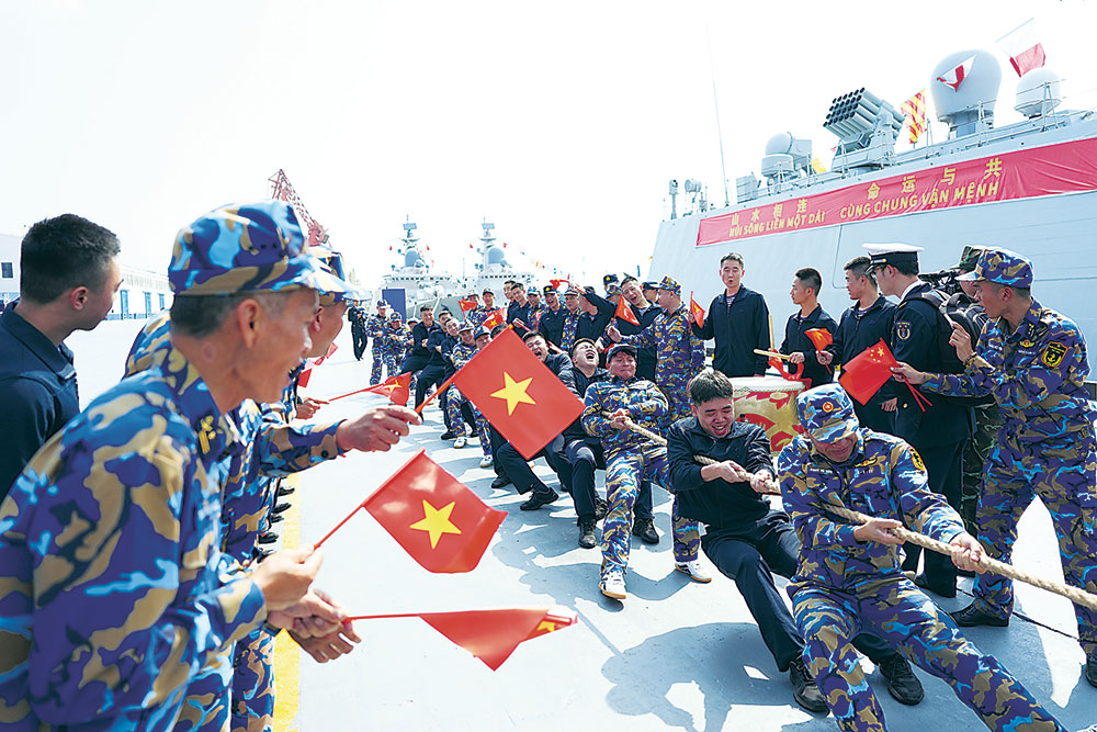 与此同时,中方官兵代表登上越南海军“陈兴道”号导弹护卫舰参观。在热情友好的氛围中,中越海军官兵围绕武器装备维护、日常训练管理等进行交流,在加深了解中增进互信与友谊。