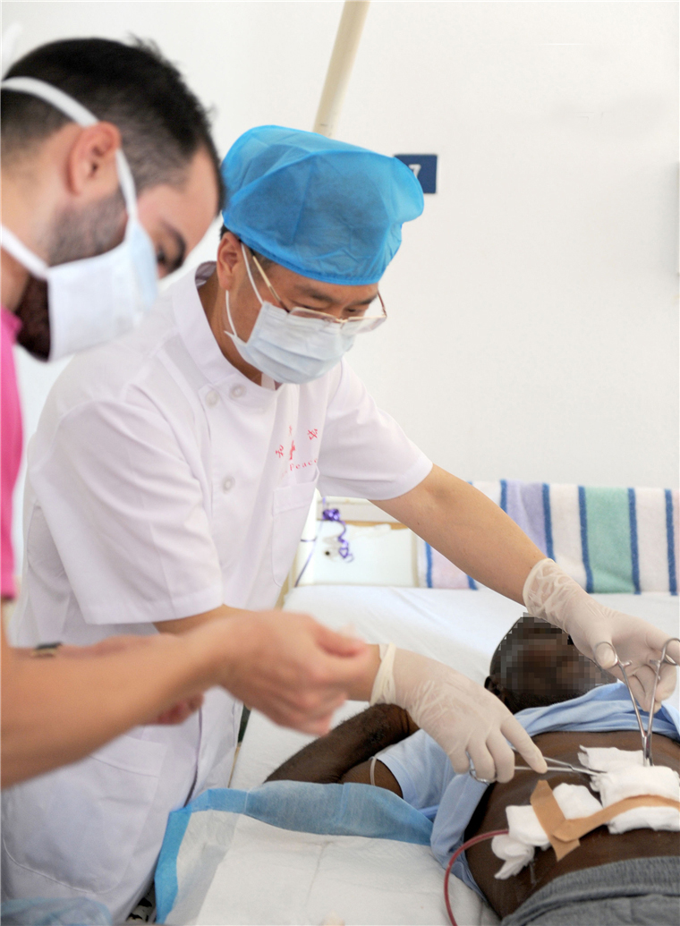 拉格雷纳德与和平方舟医生亲切握手,认真察看中格双方医生联合诊治情况。她动情地说,我们非常感谢你们能来到这里,将精湛的医术免费提供给格林纳达人民。她称赞和平方舟满载着健康和友谊,为格林纳达患病民众提供了巨大的帮助,带来了实实在在的健康和希望。