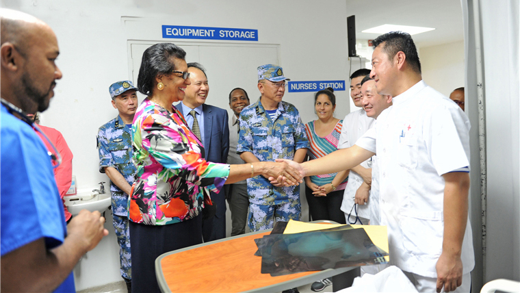 累计诊疗6406人次,辅助检查2221人次,收治住院15人,手术13例……这是和平方舟抵达格林纳达五天来的成绩单。6日上午,格总督塞茜尔•拉格雷纳德在中国驻格大使赵永琛、“和谐使命-2018”任务指挥员陪同下,专程赴格总医院看望慰问正在这里进行医疗服务的和平方舟医生。