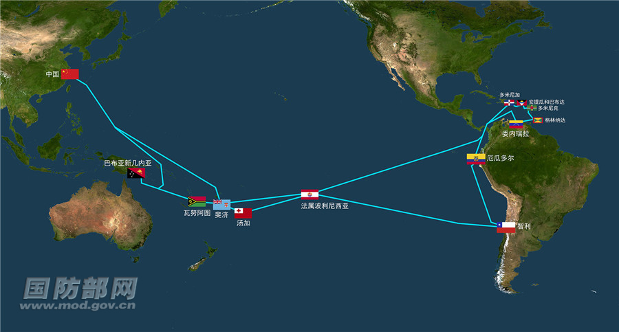 这是和平方舟执行“和谐使命-2018”任务和参加智利海军成立200周年纪念活动航迹示意图。同一个世界,同一个家园。和平方舟将大洋两岸紧紧相连,浩瀚的太平洋不再遥远。