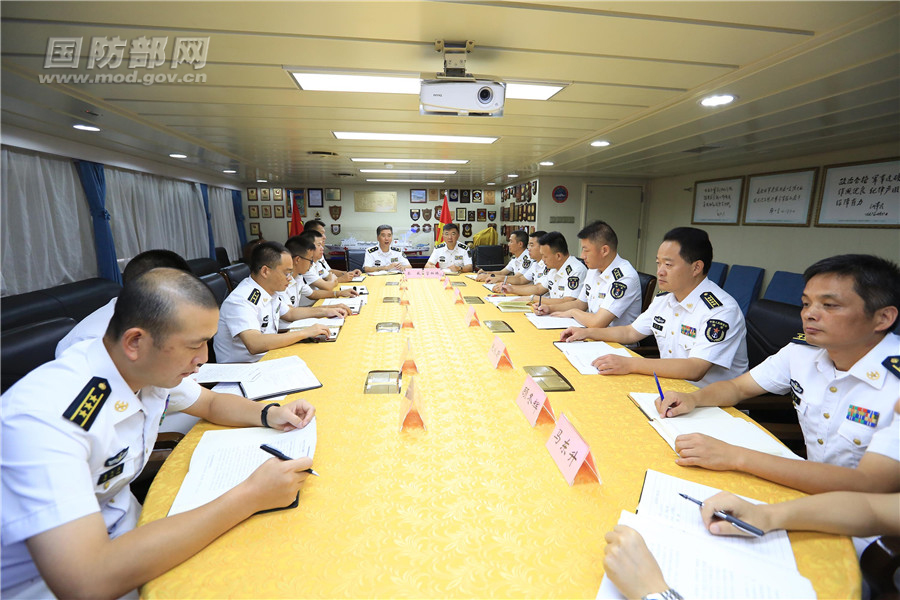 旗帜引领方向,思想照亮航程。“和谐使命-2018”任务临时党委始终坚持以习近平新时代中国特色社会主义思想为指导,深入贯彻习近平强军思想,用全面建成世界一流海军的伟大号召引领方向、凝聚力量。