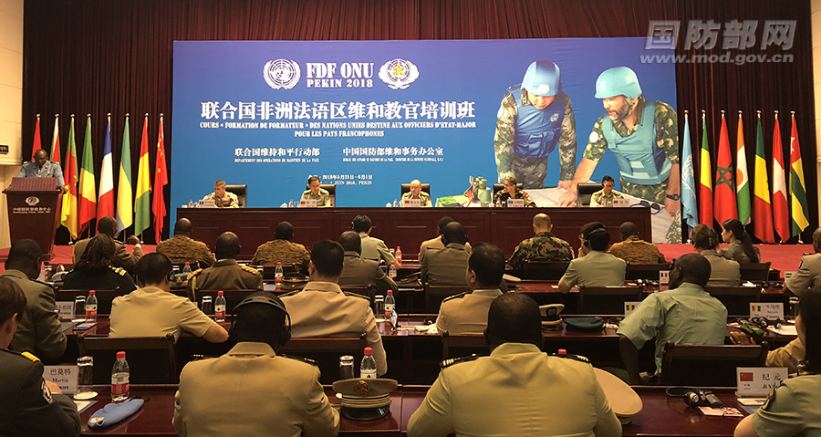 5月21日至6月1日,由中国—联合国和平与发展基金出资、中国和联合国共同举办的联合国非洲法语区维和教官国际培训班在国防部维和中心举办。培训班采用中外联教联训方式组织实施,来自中国和非洲法语区15个维和出兵国的27名学员混编参训,中国、法国、尼日尔、摩洛哥、瑞士和联合国维和部等6名教官共同授课。