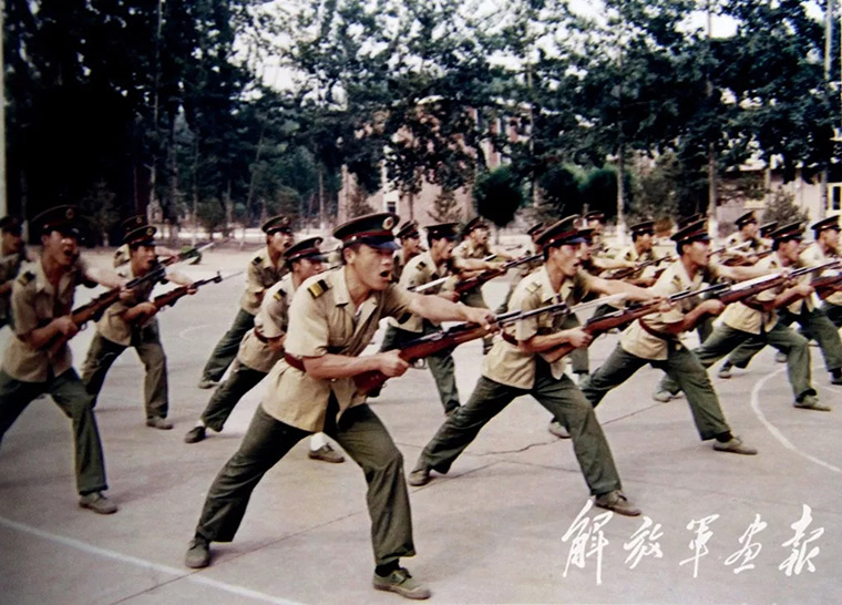 上世纪90年代,该团官兵在迎外活动中表演刺杀操。