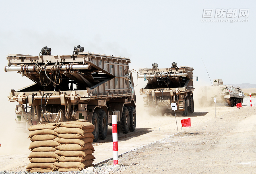外军参赛车辆依次通过混合雷场。袁凯 摄
