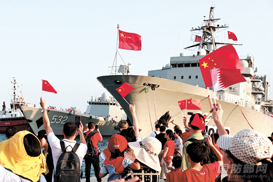 中国海军第44批护航编队10月24日抵达卡塔尔首都多哈,开始对卡塔尔进行为期5天的友好访问。卡塔尔舰队司令哈马德准将及官兵代表、中国驻卡塔尔大使馆工作人员、华侨华人代表等400余人到码头迎接。