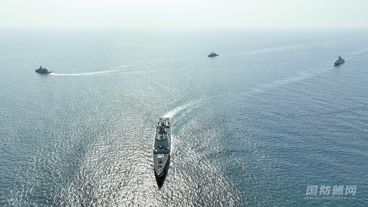 海上联演结束后,中阿双方舰艇分航。 叶宇骏摄