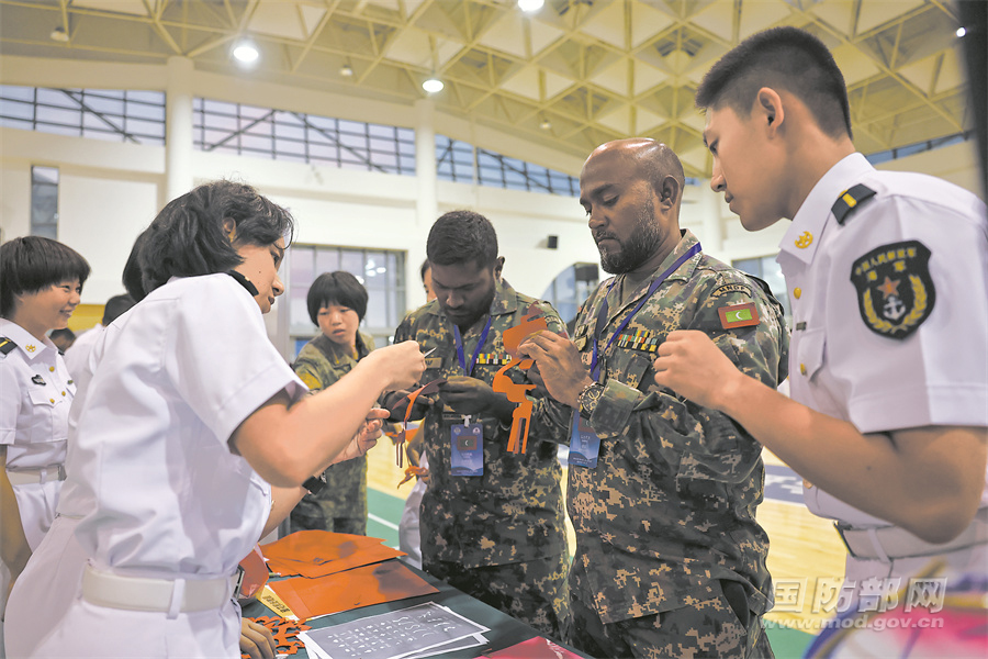 在学员周活动中,外军学员体验中国剪纸文化。李昊天摄
