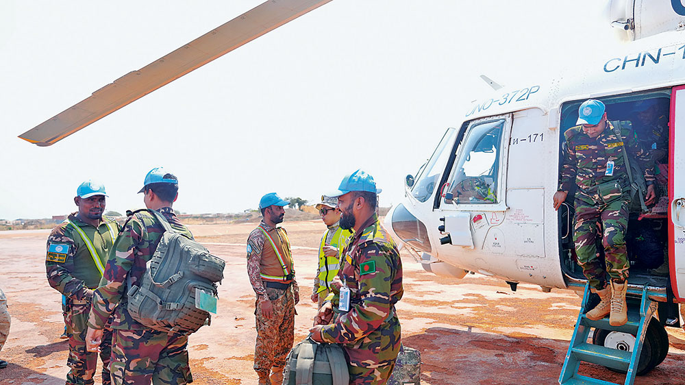 孟加拉国维和官兵走下直升机。黄 浩摄