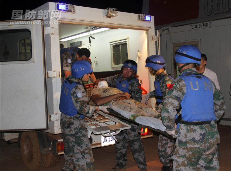 当晚20时40分,3名伤员由医疗队先遣救护组前接至中国维和二级医院,我医护人员迅速对伤员进行生命体征检测并通过X射线明确弹片遗留部位。据悉,三名伤员均意识清醒,1名伤员下颌裂伤,左侧根骨骨折,1名伤员头部弹片撕裂伤,1名伤员右肘部2度烧伤、右肩弹片伤、全身多处软组织挫伤。