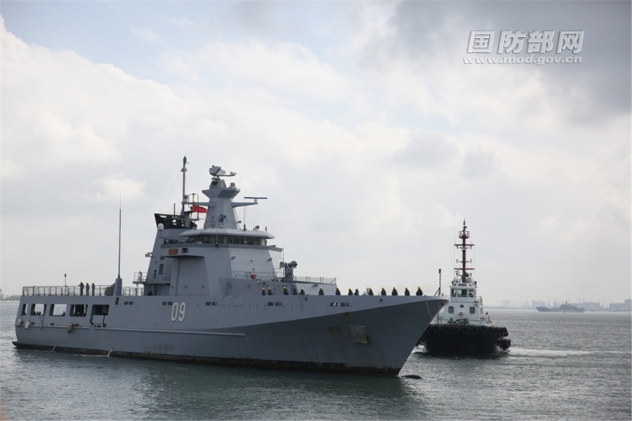 此次演习,中方将派出导弹驱逐舰广州舰、导弹护卫舰黄山舰、综合补给舰军山湖舰参演。在东盟各国参演兵力到港前,中方舰艇均悬挂满旗以示欢迎和尊重;海军仪仗队在港口分区列队,海军军乐队也在港口奏起了欢迎曲。