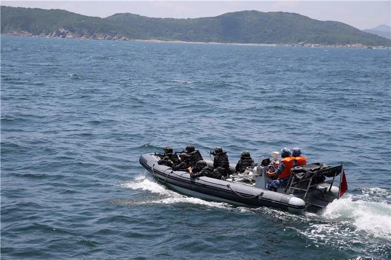 特战分队搭乘快艇抵近登船。