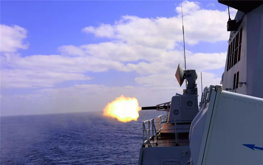 海军第二十八批护航编队组织主副炮实弹射击训练