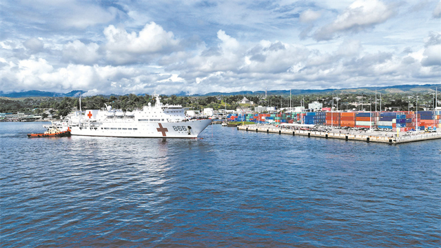 2023-08-22 14:56中国海军和平方舟医院船抵达所罗门群岛霍尼亚拉港