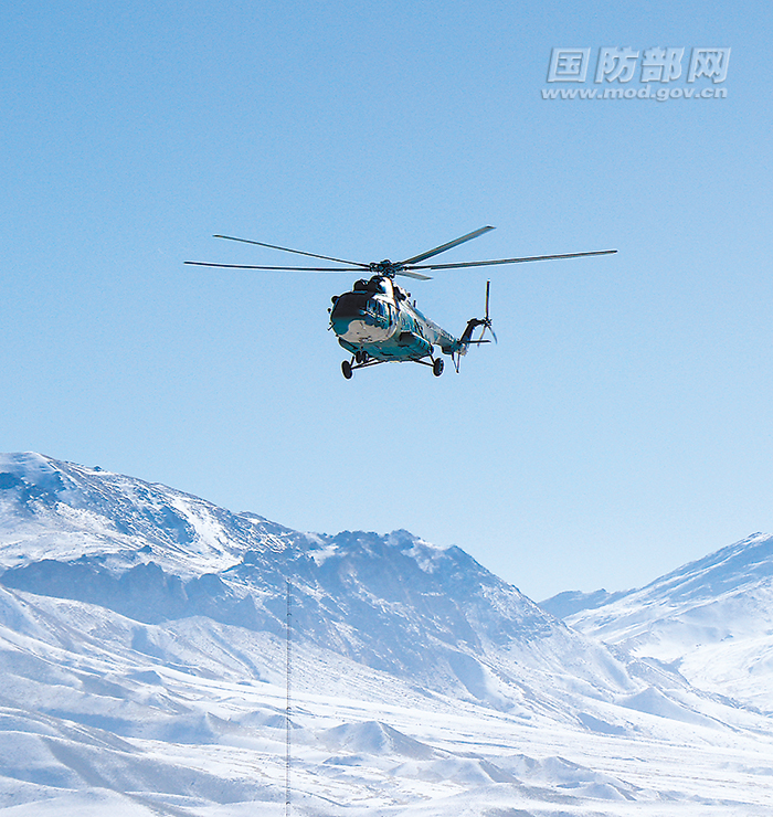 直升机飞越雪山将患病战士送往医院。
