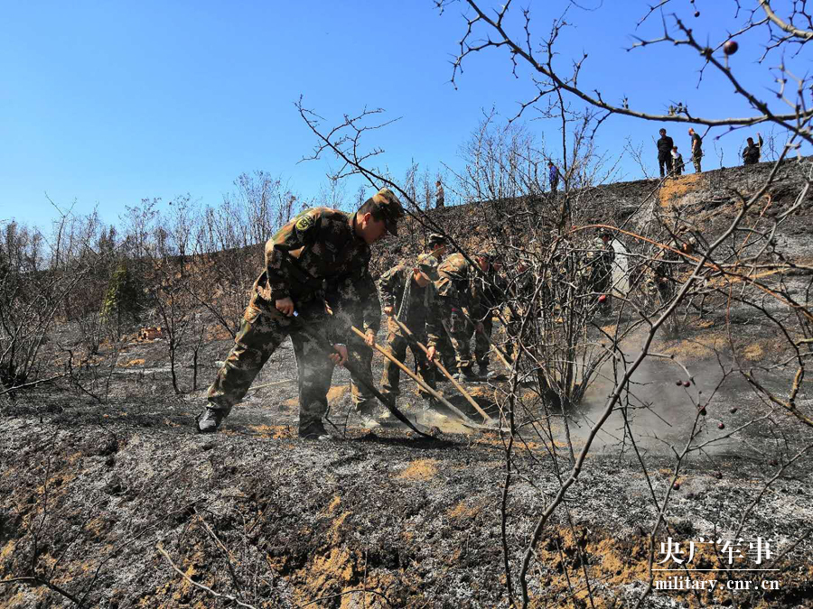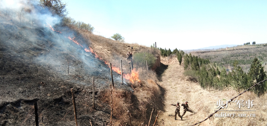 央广网4月6日消息(张威 屈英俊)4月5日下午,铜川市耀州区上楼村突发山林火灾,武警咸阳支队执勤七中队官兵第一时间赶赴火场处置,经过1个多小时奋战,成功将山火扑灭,受到驻地政府和群众的高度赞扬。