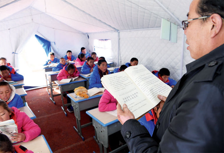 玛多7.4级地震发生后,果洛州军民众志成城、万众一心,全力保障抗震救灾各项工作有序快速推进。由于地震,校舍受损,当地政府在黄河乡、花石峡镇、扎陵湖乡等临时安置点搭建了多个帐篷教室,保障孩子们在高原顺利复课。