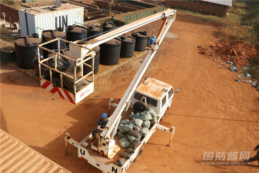 中国维和工兵搭建的10间新式岗楼交付使用