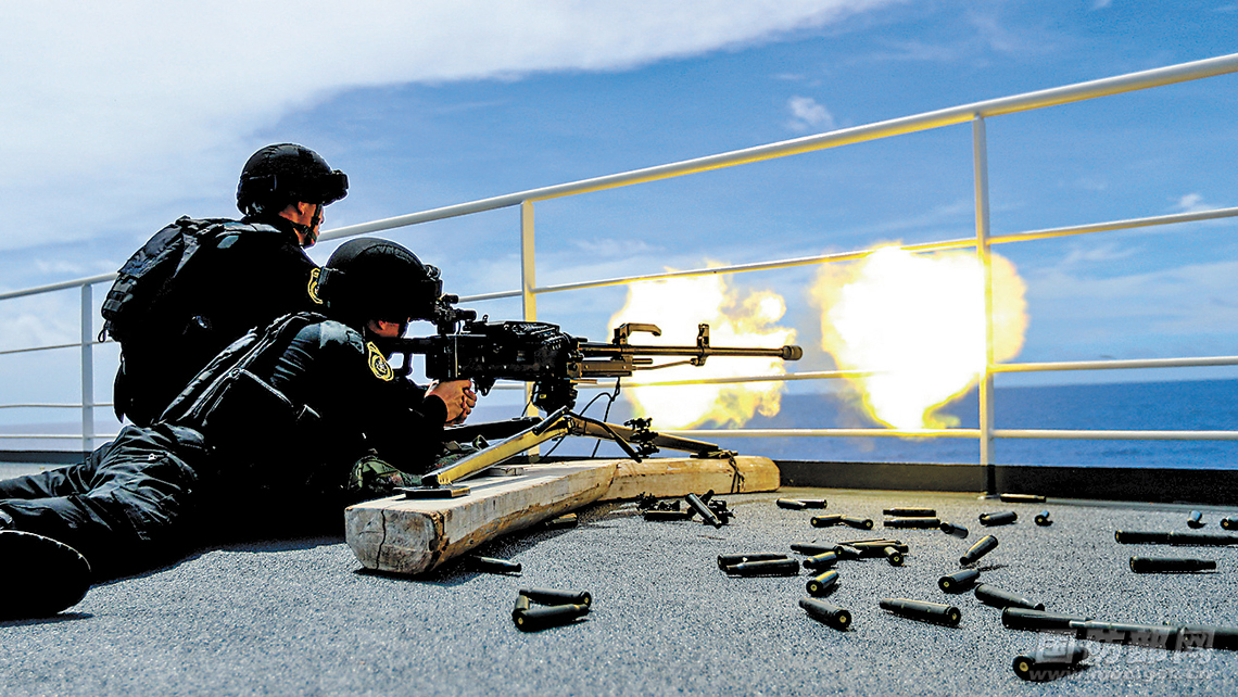 虽然受我密集火力阻击,但“海盗艇”仍不死心,又绕至我船艉企图登船。火力指挥员临机处置,调整3个火力组,在船艉组成一张火力网。