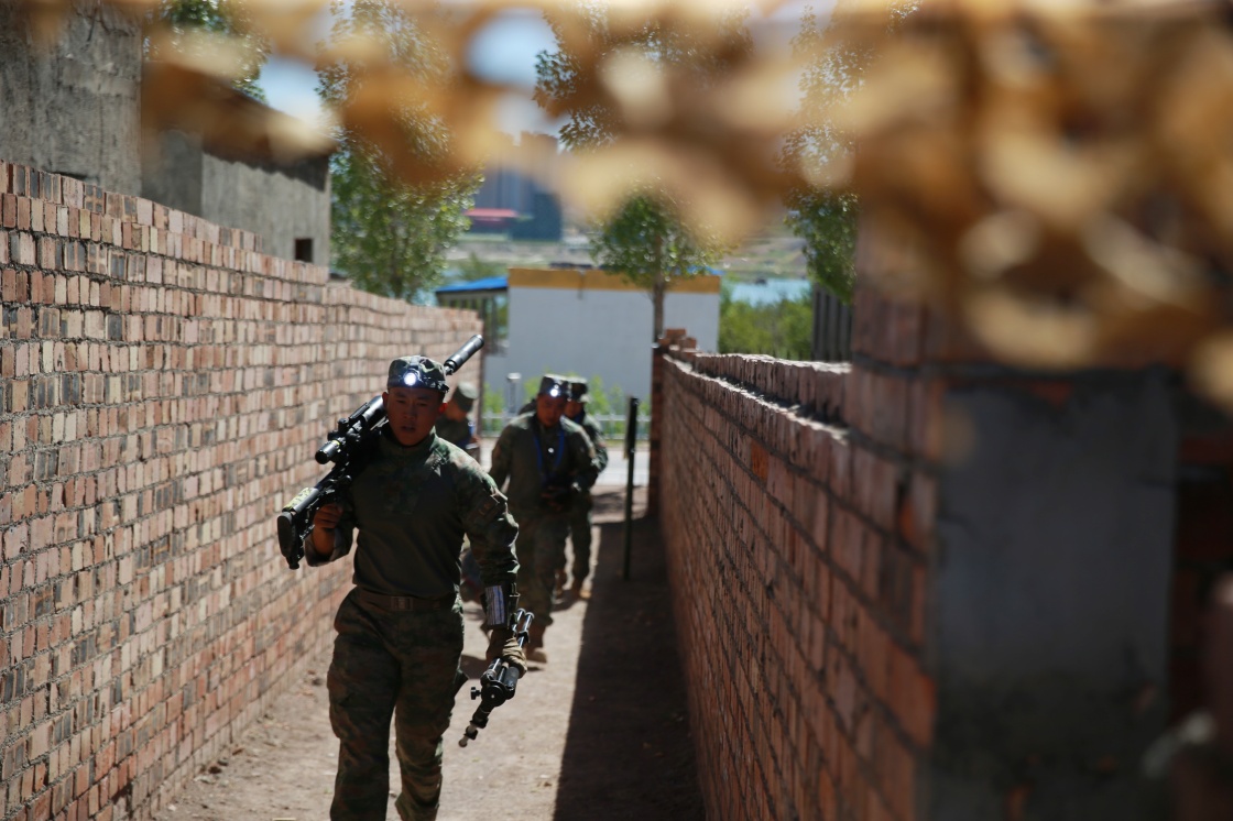 参加“锋刃-2023”国际狙击手射击竞赛的中国参赛队员在穿越狙击课目竞赛中(7月12日摄)。新华社发(徐伟摄)