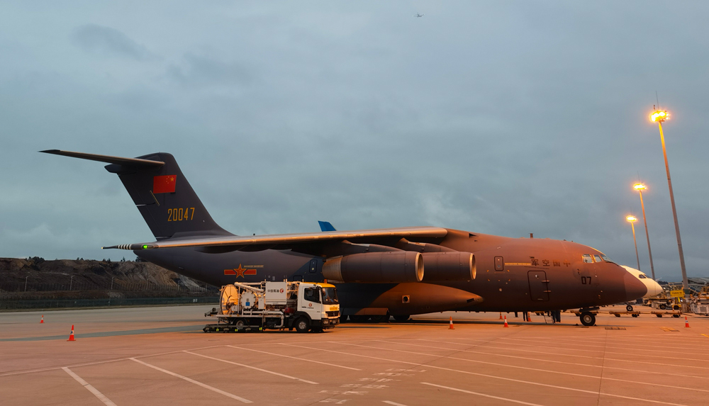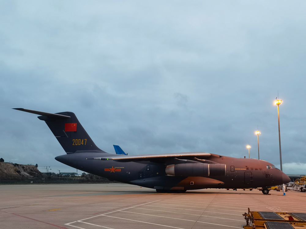 完成救灾物资卸载交接后,两架运-20飞机星夜兼程,按原路顺利返回国内归建。