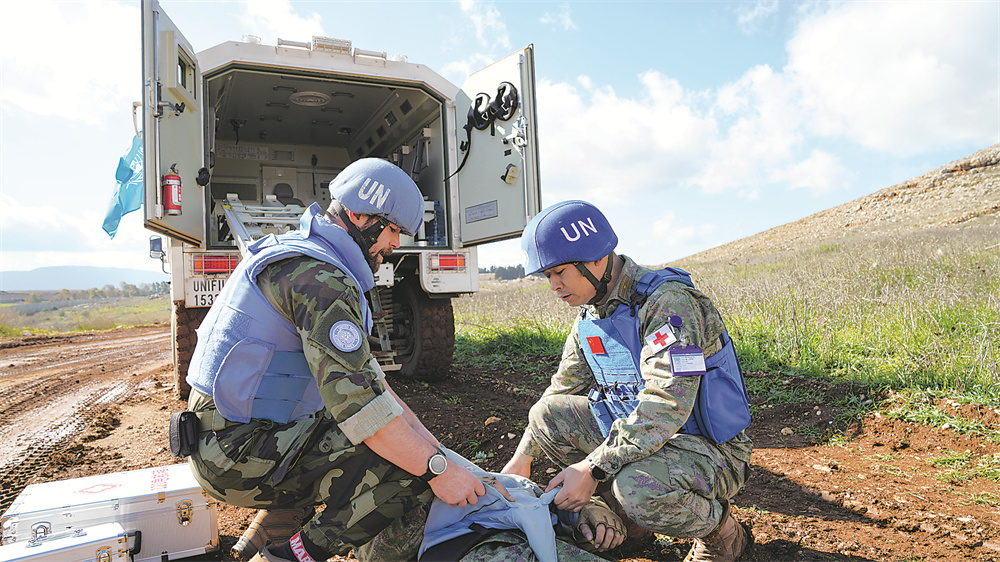 应急防卫演练中,中国军医与爱尔兰军医协同行动。瞿发统摄