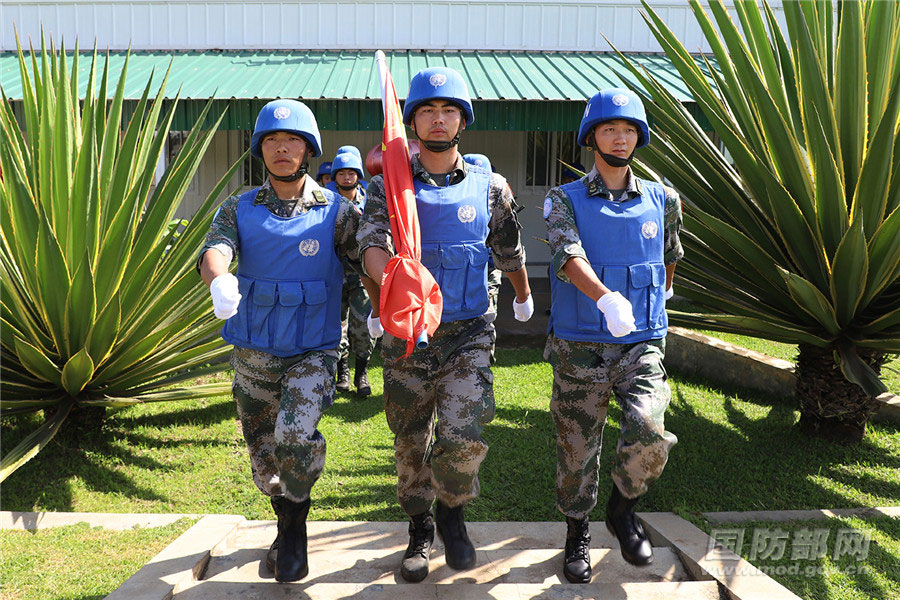 当地时间12月31日上午6时30分,中国第22批赴刚果(金)维和工兵分队,在刚果(金)布卡武市“中国半岛”营区举行了隆重的升国旗仪式,鲜艳的五星红旗冉冉升起,雄壮的国歌响彻营区。此外,该分队还开展了丰富多彩的活动,以多种形式为伟大祖国祈福,祝福祖国繁荣昌盛,人民生活幸福安康。(李志强摄影报道)