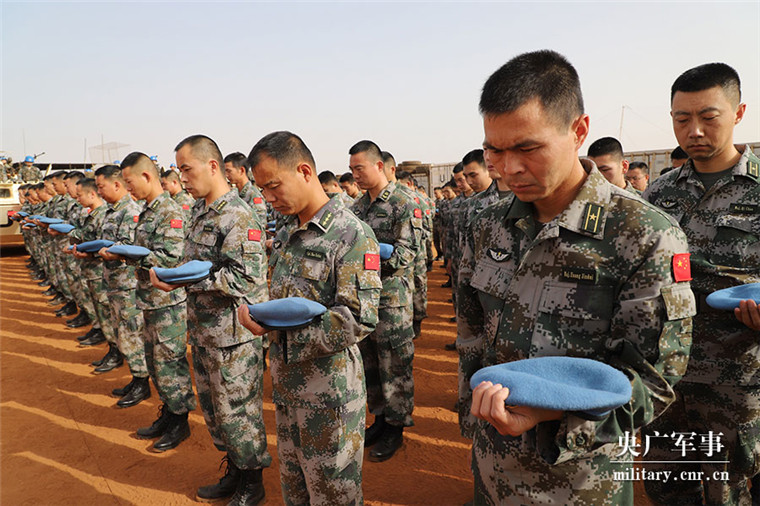 “全体脱帽,默哀!”随着主持人的指挥,沉痛与哀思充斥着每名官兵的心扉,短暂的默哀也坚定了维和官兵们英勇顽强、矢志维和的信念决心。